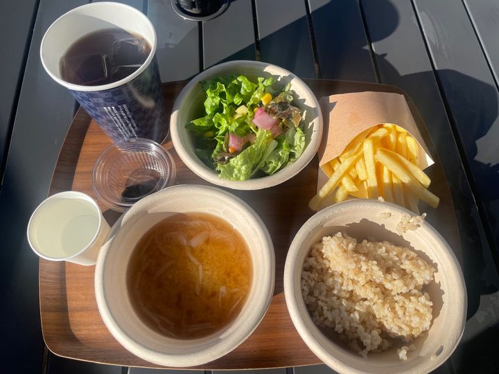 ポテトは、LINEお友だち登録のクーポンでいただきました。 サラダ、玄米、もろみスープだけでも、モーニングとしては十分な量がありましたので、クーポンは他の時間帯で使うのがいいかもしれません。