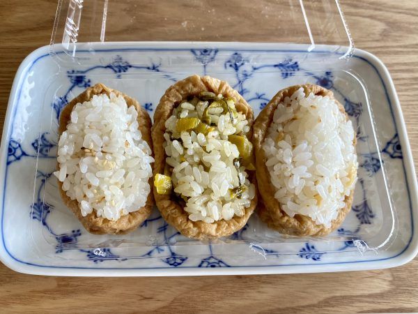 そして今日は初めてお稲荷さんも買うことにしました。3種のお稲荷さん550円。