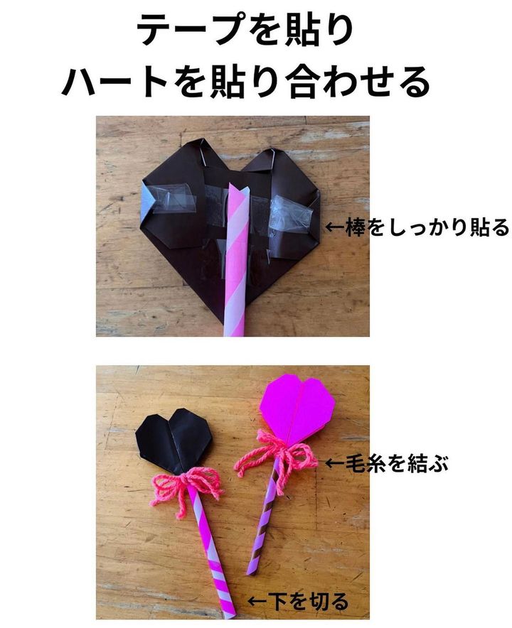 3. 【バレンタイン工作】しましま棒のハートステッキを折り紙で作ろう!