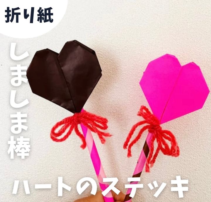【バレンタイン工作】しましま棒のハートステッキを折り紙で作ろう!