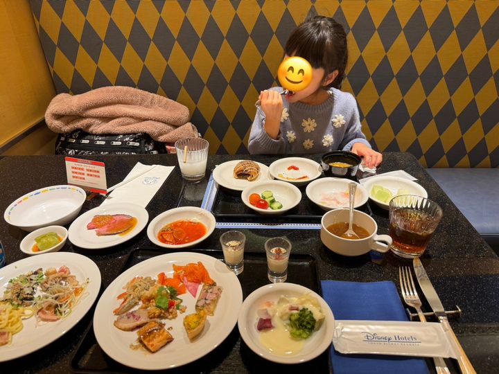 ミッキーが各テーブルを回って写真撮影するのを再開しており、近くでふれあったりくっついて写真を撮ることができました!シェフミッキーはお料理の種類もとても豊富でたくさんのメニューを楽しめましたし、子ども用のメニューもあるので、苦手な食べ物が多い6歳の娘も食事を楽しむことができました。
