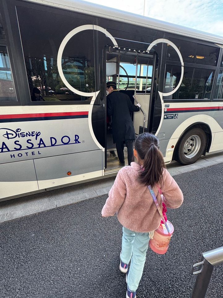 エレベーターの中ではミッキーの声のアナウンスもありますし(これ、私的にはとても嬉しいポイントなんです)、ディズニーホテルの中では手に取りやすい価格でありながら満足度も高くとてもコスパのいいホテルだな~と感じました。パークからホテルまではバスで20分くらいかかりました。