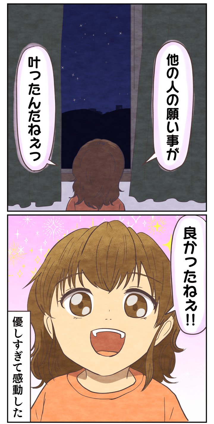 他の人の願いが叶った(かもしれない)ことを喜んでいる姿を見て、夜更かしはしんどいけれど尊いものを見られて良かったです。