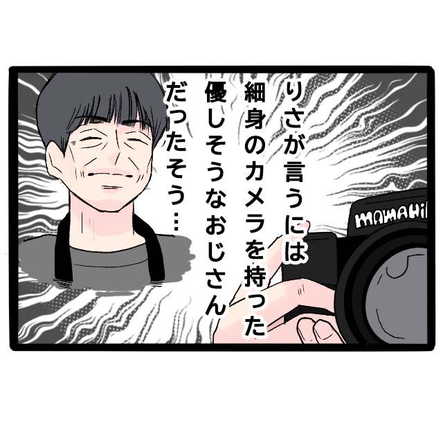 娘が言うには細見のカメラを持ったやさしそうなおじさんだったそう。
