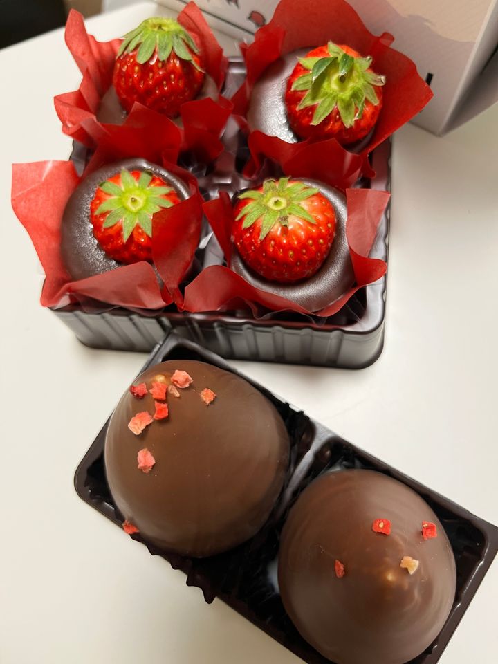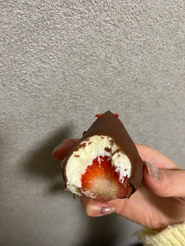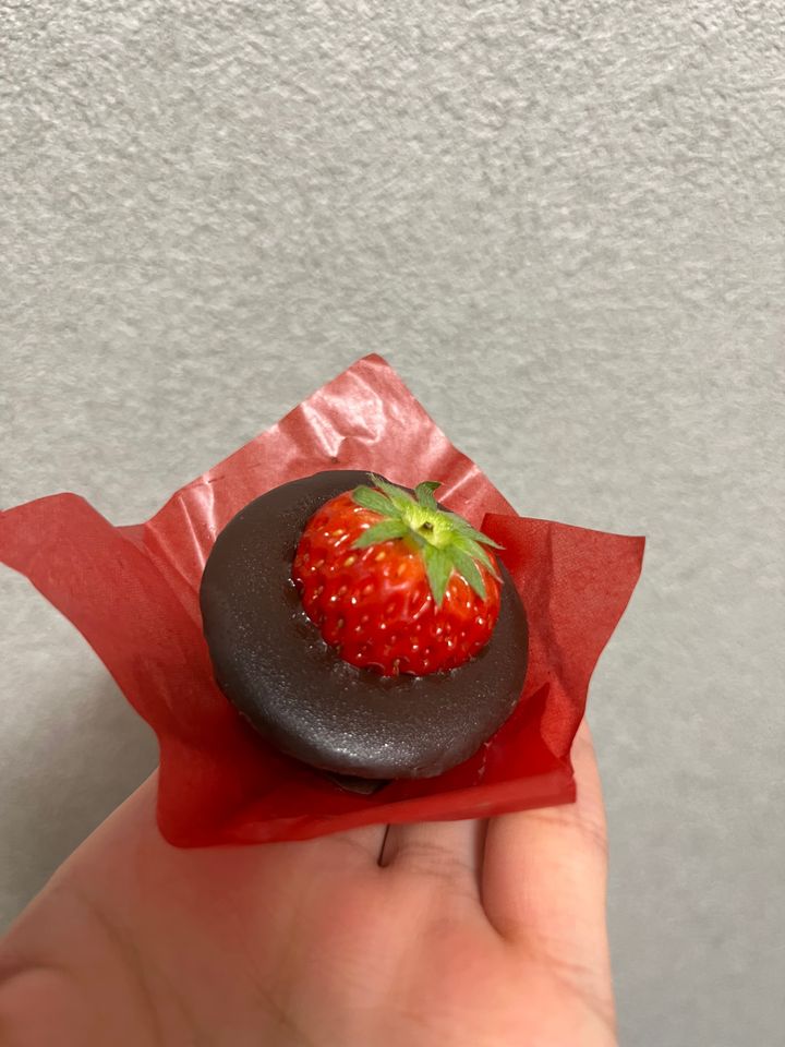 チョコは中はねっとり系で、お酒も効いており、こちらも土台にクッキーがついており、大人ないちご🍓