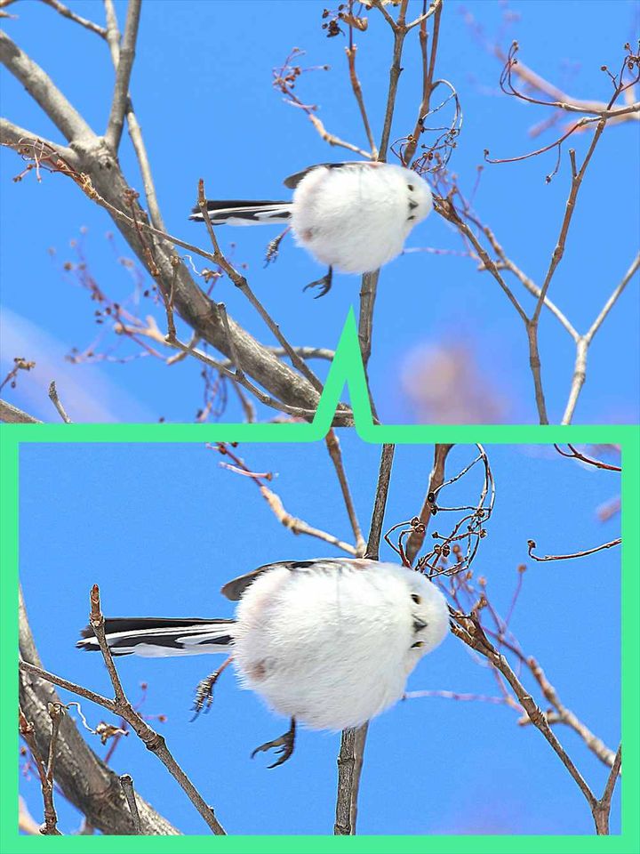 奇跡の一枚が撮れた!首をかしげたままジャンプするシマエナガが話題に!「見えない天井に当たった感」「考え事しながら飛んだのかな?」