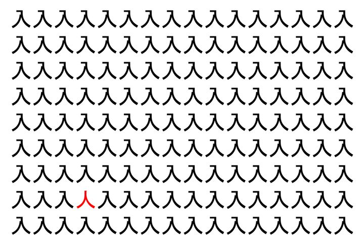 【脳トレ】「入」の中に紛れて1つ違う文字がある!?あなたは何秒で探し出せるかな??【違う文字を探せ!】