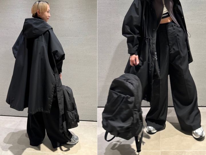「キルティングのライナーが付いているブルゾンは、寒い冬の時期から春はライナーを取り除いてスプリングコートとして着られる万能アイテム。毎シーズン大人気のバックパックは、デザイン性の高いタック&ギャザーデザインがこなれ感と愛らしさを演出。ニューバランスのランニングシューズはハイスペックソールではき心地抜群です」ブルゾン¥39,600、バックパック¥14,850(共にエミ)、スニーカー¥19,800(ニューバランス/全てエミ)
