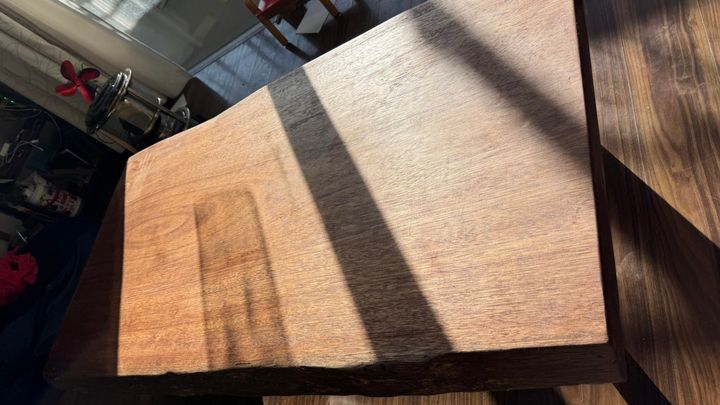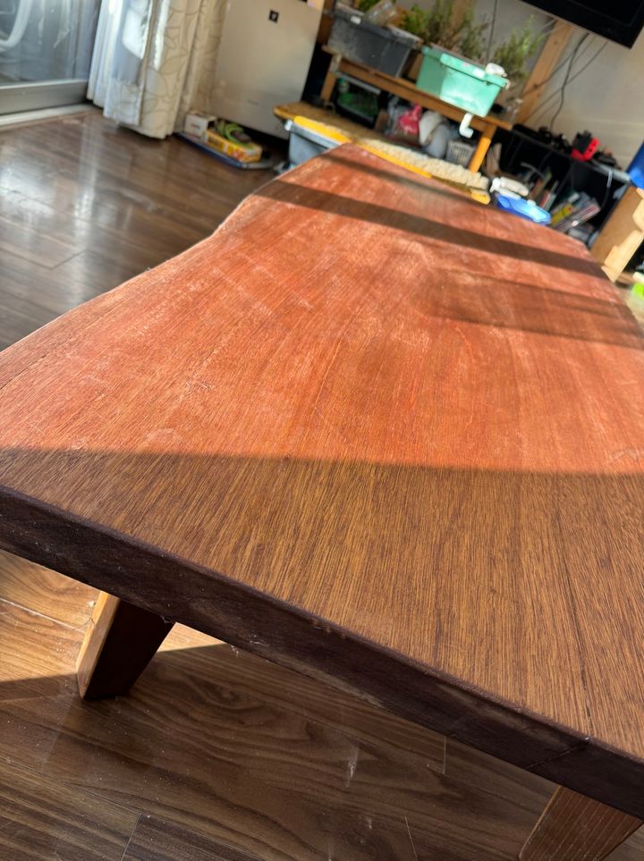 それでもメルカリで一枚板を探す毎日が続きました。ある日見つけたのが、レッドメランチと言う木。送料込みでも13,000円。なかなかお買い得でした。