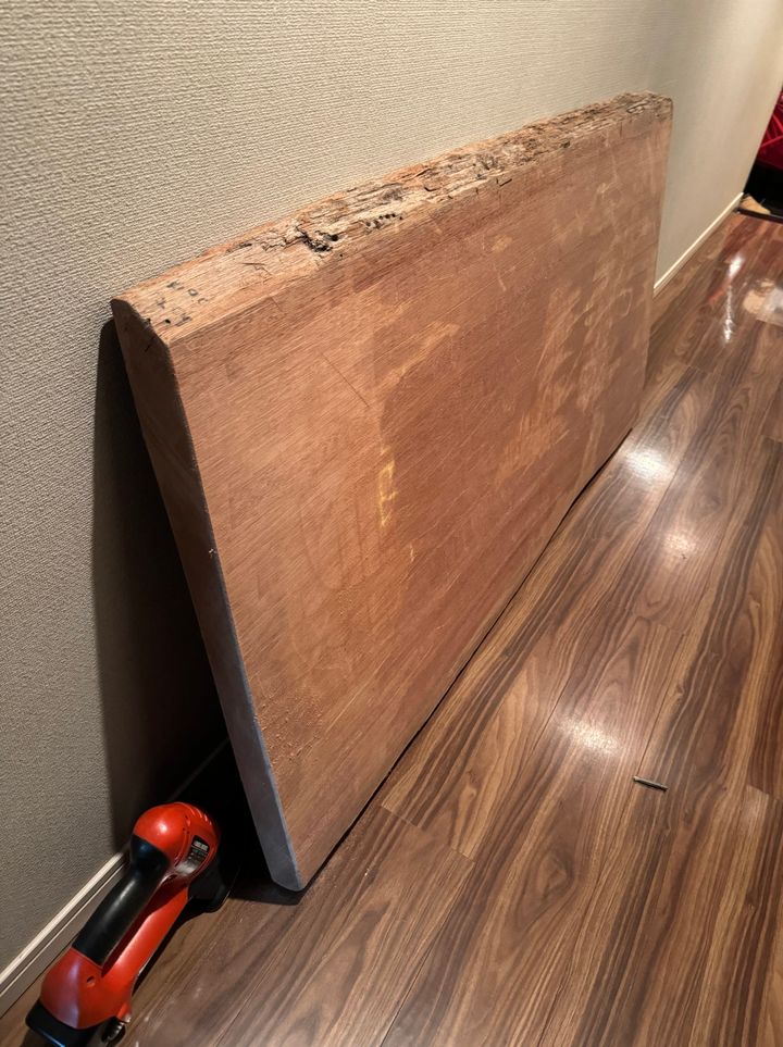 ども、ふぢゴリです。今回はかねてから念願だった一枚板のテーブルをDIYした話です。話すと長くなるのですが、一枚板のテーブルって憧れありませんか?少なくとも私はずっと憧れてました。なんつーか耳のあるテーブルとか見るとゾクゾクしてしまう感じです。おばあちゃん家とかにあるイメージの、重いけど広い一枚板のテーブルに憧れて欲しいなと思っていました。