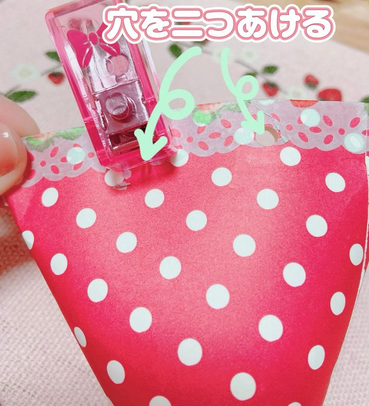 穴あけパンチで2か所穴をあけ好きな色のリボンを通して結んだら完成!