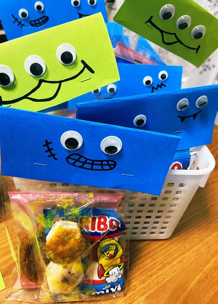 ハロウィーンの時は目玉のシールでデコレーションをしました。たくさん作って箱に陳列して置いてみたら売り物みたいでかわいいと大好評!シンプルだけどアレンジ次第で個性が生かされるおすすめラッピングです♪