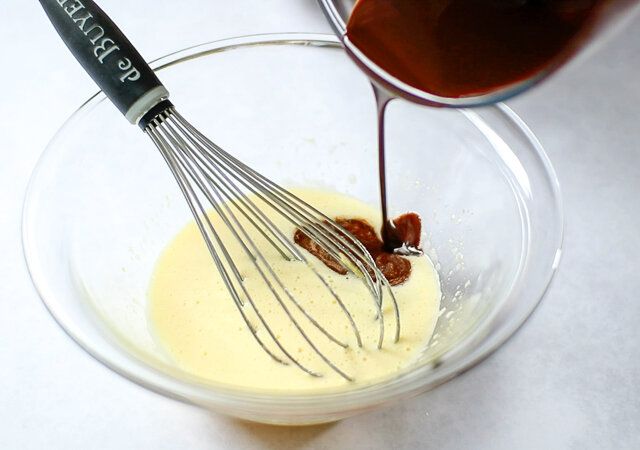 ③ ①の溶かしたチョコレートとバターを加えて混ぜ合わせます。