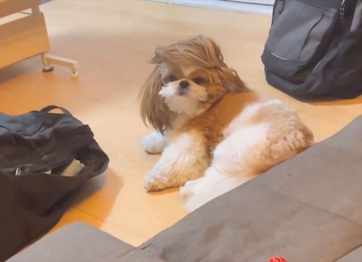 シーズーことをふと見たら・・なんだかスゴい髪型に!?「可愛いすぎますよ」「横流しサラリーマンヘア」