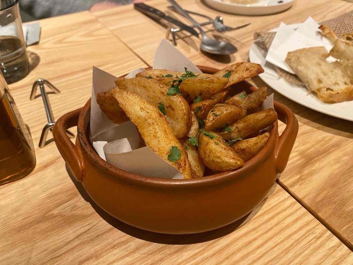 「アンチョビポテト」750円は、アンチョビ味のフライドポテトがかなりお酒に合いそうな感じ。