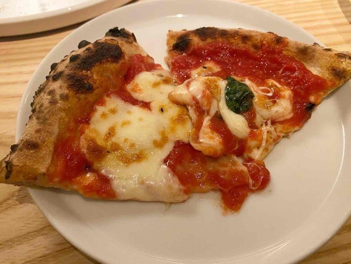 チーズがたっぷり乗っていて、チーズの重さで生地の上からトロトロ滑り落ちそうになるほど。ジューシーなトマトの感じも最高でした。