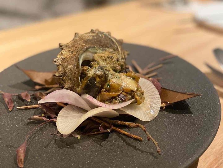 「サザエの香草バター焼き」900円は、ゴージャスな盛り付けに感激。濃厚な美味しさでした。
