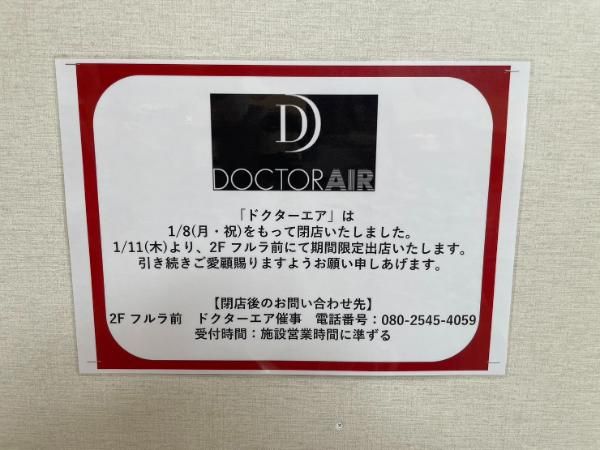 ただし、「ドクターエア」は1月11日(木)から、2階フルラ前の催事スペースで期間限定で出店されるとのことでした。