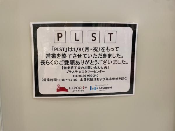 1階のオレンジサイド側にあったアパレル店「PLST(プラステ)ららぽーとEXPOCITY店」が2024年1月8日(祝・月)に閉店しました。