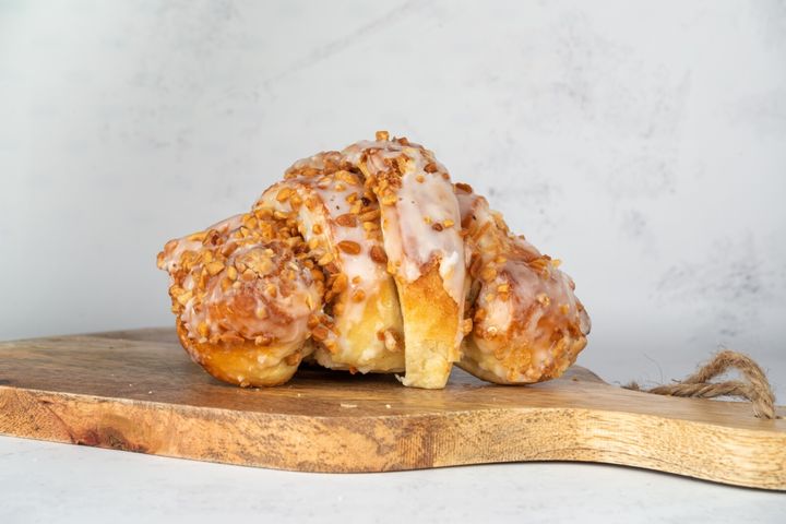 まず手に持ったときの感想は「重いっ!」。ナッツやドライフルーツの甘いフィリングがギッシリ詰まっていて、さらに表面にはアイシングと砕いたナッツが。