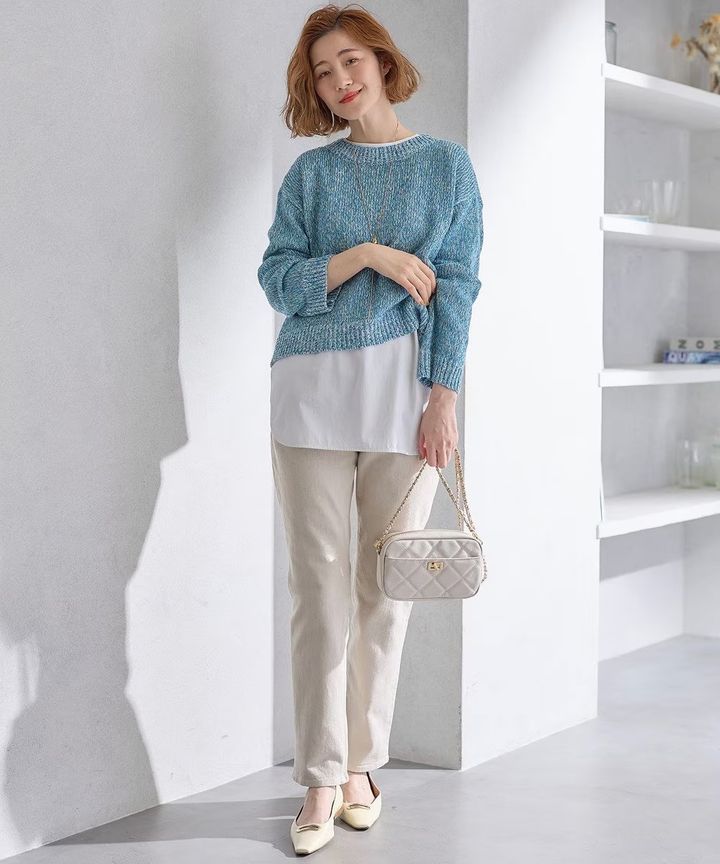カジュアルに使えるニットは、それだけで若見え効果が高いのでおすすめです。