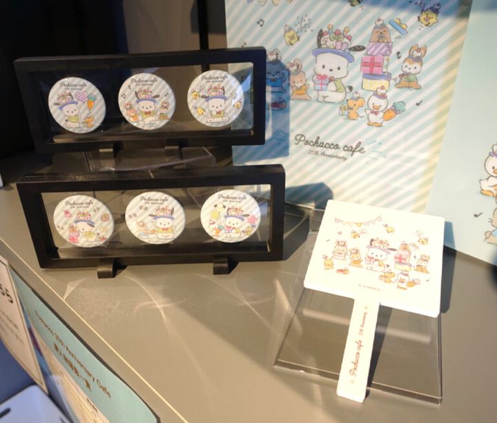 上記画像の缶バッジ、ハンドミラーの他、アクリルキーホルダー、ステッカー、クリアファイル(2枚セット)、アクリルスタンドがあります。