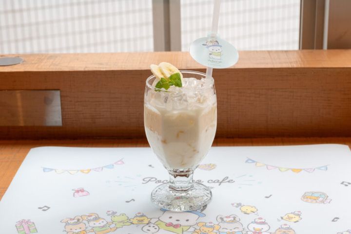 バナナアイスにポチャッコの顔が描かれた癒されるドリンク。