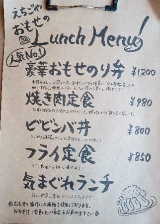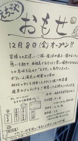 えちごや おもせ 福島市黒岩字素利町2 TEL 024-546-1529 ←問い合わせは越後屋まで 営業時間 11:30~14:30(最終入店) ランチ営業 月~金 定休日 土・日・祝 Instagram えちごや おもせ(@echigoya__omose)