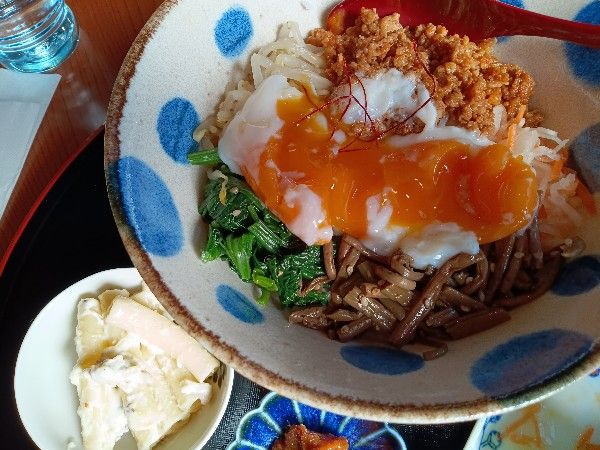 ビビンバと言えば卵のトッピングですよね‼なんと双子の温玉が可愛く鎮座していましたよ~