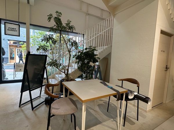 grow up commonsのスペースには、机といすがありました。平日はオフィスとして使われていて、週末だけはこの場所でイートインも可能だそうです。
