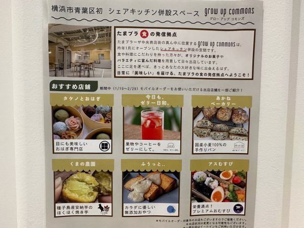 「大喜楼 たまプラーザ本店」のすぐ先なのでわかりやすいですね。このビルの中の「grow up commons」は、月替わりでいろんなお店が販売をするシェアキッチンになっています。