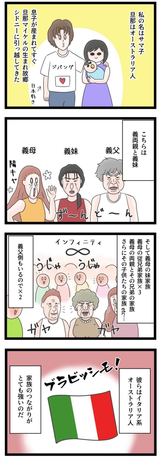 [1-1]正直しんどい。義家族親戚の輪がデカくて密・・めんどくさ!義母のSNSが嫌すぎる|サマ子の海外ママじゃーなる in オーストラリア