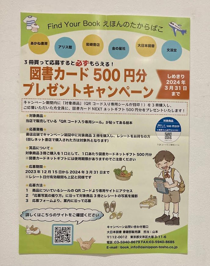 3冊買うと必ず図書カードがもらえる!えほんのたからばこキャンペーン