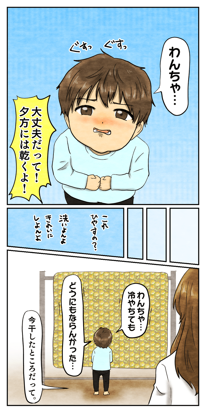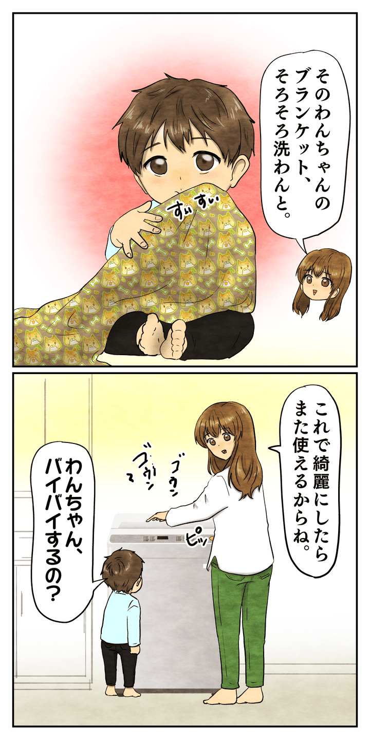 3. 一生の別れ!?お気に入りのブランケットを洗った時の息子の反応がかわいすぎる(笑)|いずのすずみの育児漫画
