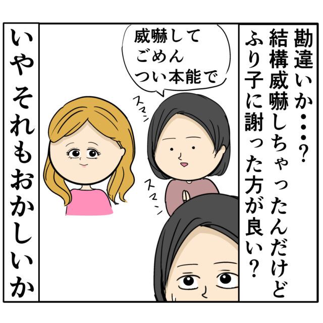 威嚇してしまったふり子さんに、勘違いだったと謝るべきか考えていたのです。