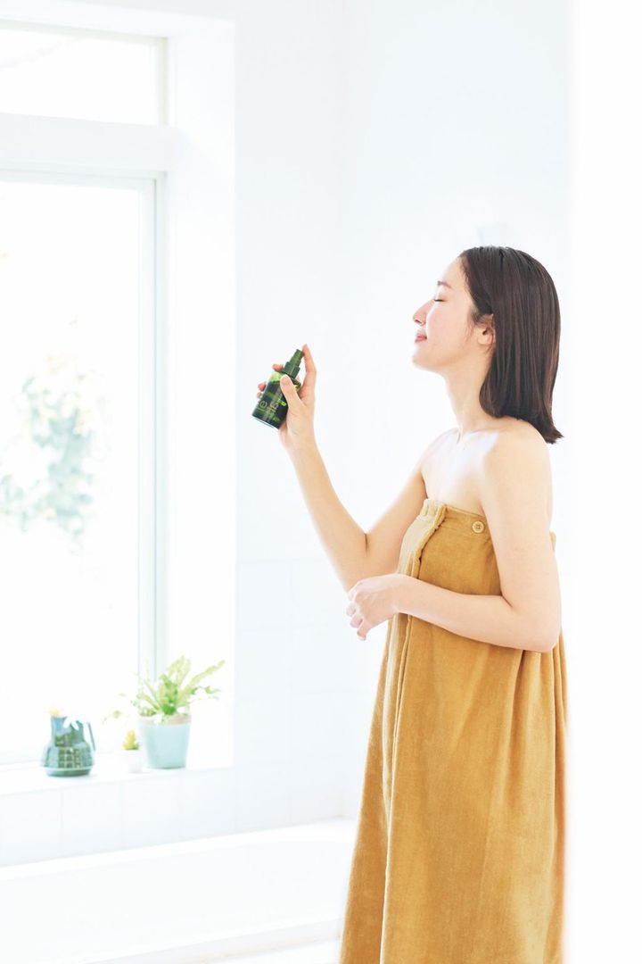 「お風呂場を出たすぐのところに常備。心臓から遠い部分からリンパの流れに沿ってなじませます 」(小林さん)。めぐりをサポートして、ふっくら柔肌に導く。