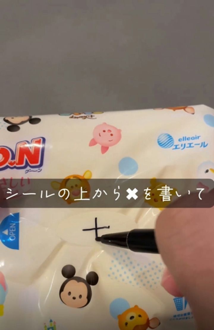 封をしているシールの上から、ペンでバツ印を書きます。真ん中あたりに書くと良いですね。