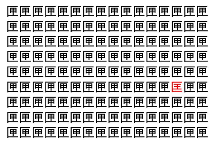 画像の中には、「匣」という漢字が縦に9行、横に16個並んでいます。 全部で144個となりますが・・・、そのうち1つは「異なる漢字」となってますよ!!