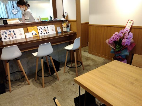 店内は、テーブル4人席、テーブル2人席、カウンター7席の全13席。