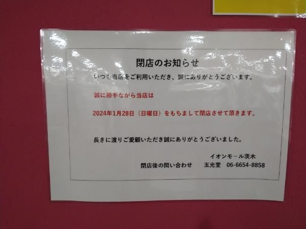 1階では、2023年9月にオープンした「ハッピーフィナンシェ イオンモール茨木店」が2024年1月31日(水)に閉店。