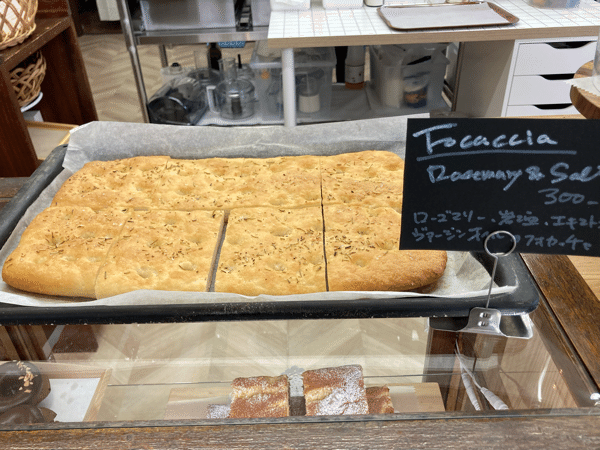 ローズマリーと岩塩のフォカッチャです。焼きたてのフォカッチャをテイクアウトしましたが、帰宅してすぐに我慢できずに食べてしまいました。焼きたてなのでつい……岩塩の塩気とローズマリーの爽やかな風味がよくマッチしていて、とっても美味しいです。