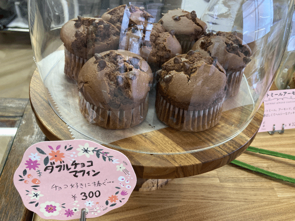 2023年10月のオープン以降、新しい商品が不定期でぞくぞくと登場しています。寒くなってきたころにダブルチョコマフィンが登場。クリスマスの時期は、スパイスケーキが店頭に並んでいました。