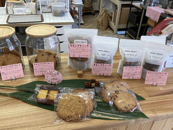 そんな気持ちから、すべて手作りのお菓子を販売しています。原材料は、自然のもの、化学的に合成された着色料や保存料などを使用していないもの、かつ小麦粉不使用のものを基準に選んでいるそうです。