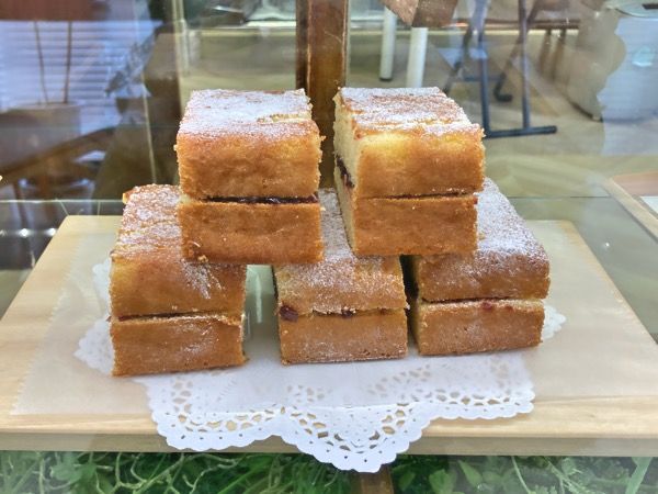 「できたてですよ〜」と言われたらもちろん食べるに決まっています。甘酸っぱいジャムがサンドされていておいしいんです!