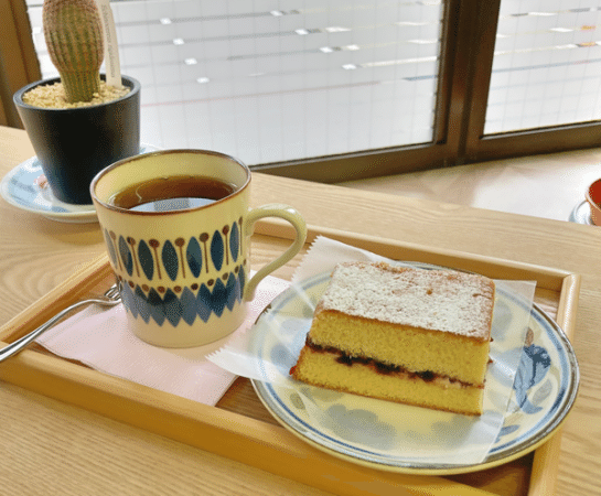 店内には、イートインスペースが2席あります。おいしいお菓子とあたたかい飲み物をいただいて、ほっと一息。幸せな気持ちになりました。