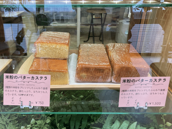 2種類の米粉をブレンド。新鮮な卵がたっぷりで、はちみつのほんのりとした優しい甘さが美味しいカステラです。食感はふんわりですが、お腹にはずっしりきます。ハーフサイズもあります。