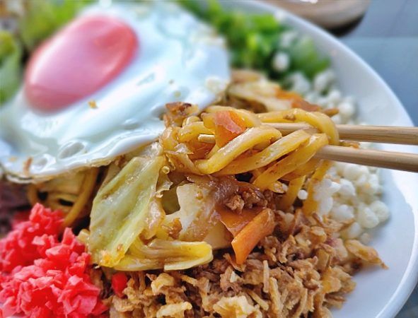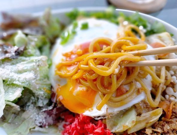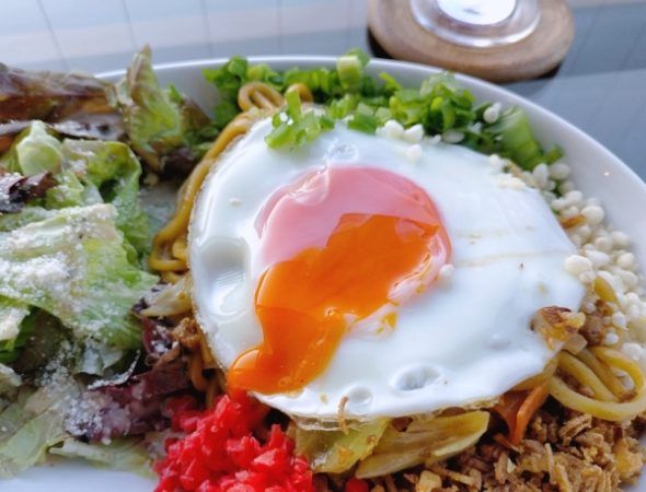 途中で目玉焼きを崩して、麺にからめて味変。