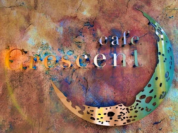三日月の意味を持つ店名をイメージした、とってもオシャレな看板を見つけたら、ぜひ階段を上がってみてくださいね。