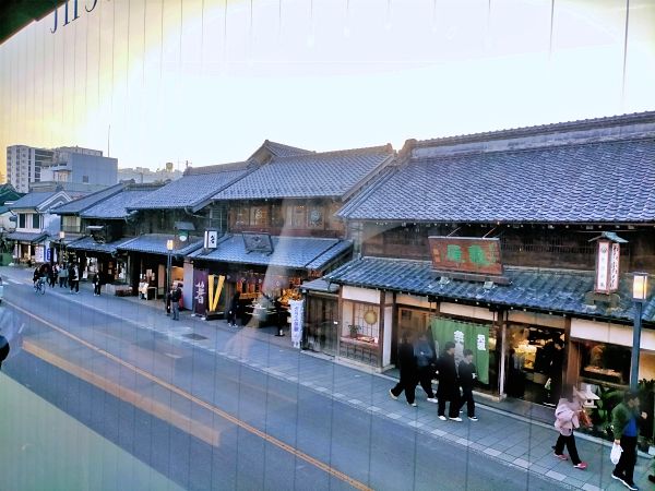 大きな鬼瓦の屋根、黒しっくいの壁、観音開きの扉など江戸の情緒を今に残す町並み。上から眺める「一番街」は、観光しながら地面から眺める景色とはちょっと違っていました。