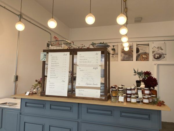 駅近くにオシャレカフェを発見!スコーンやMARUN(どら焼き)などがお持ち帰り用に売られています。